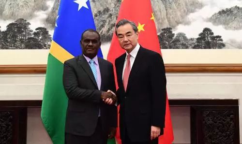 *中国外交部长王毅与所罗门群岛总理梅纳西·索加瓦雷*